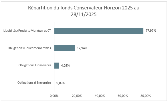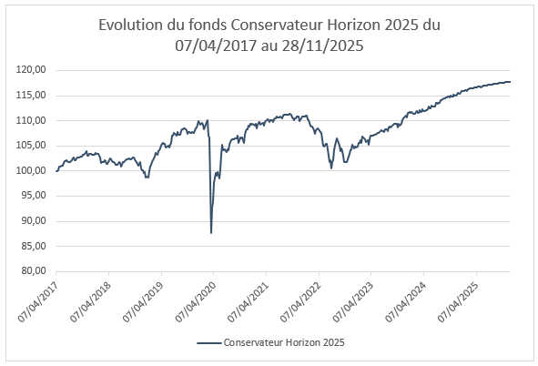 Performances en % du fonds Conservateur Horizon 2025 au 28 novembre 2025 :