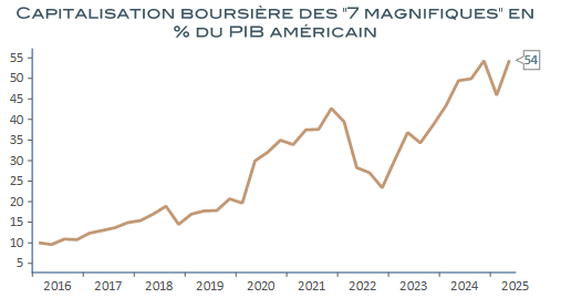 La fulgurance des développements autour des nouvelles technologies de communication bouleverse, de son côté, l’économie américaine. La capitalisation boursière des 7 plus grandes valeurs du secteur, communément dénommées les « 7 magnifiques » dépasse aujourd’hui 55 % du produit intérieur brut américain avec, pour contrepartie, d’absorber de plus en plus du capital pour financer un effort d’investissements inédits dans les infrastructures technologiques et énergétiques nécessaires à leur développement. Bienvenues après des années de disette d’investissement productif et de productivité, ces évolutions ne sont pas sans risques : surcapacité, retour sur investissement, captation des capacités de financement au détriment du reste de l’économie, inflation énergétique et emploi sont les menaces les plus importantes, assorties de risques financiers de grande ampleur.