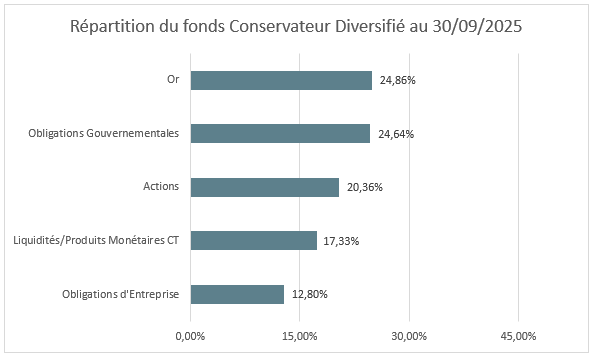 Performances en % du fonds Conservateur Diversifié au 30 septembre 2025 :