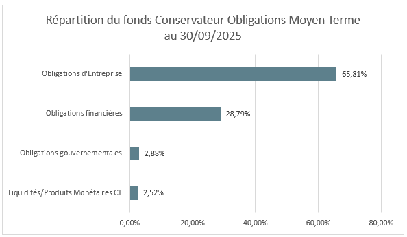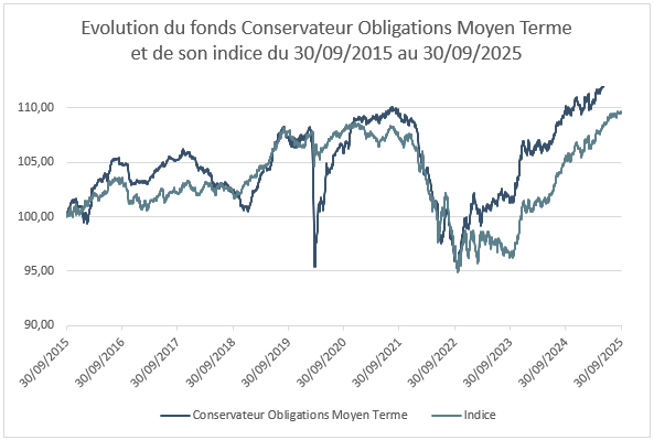 Performances en % du fonds Conservateur Obligations Moyen Terme au 30 septembre 2025 :