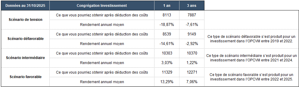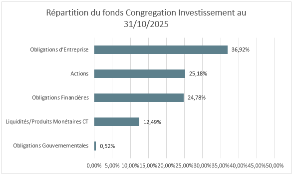 Performances en % du fonds Congrégation Investissement au 31 octobre 2025 :