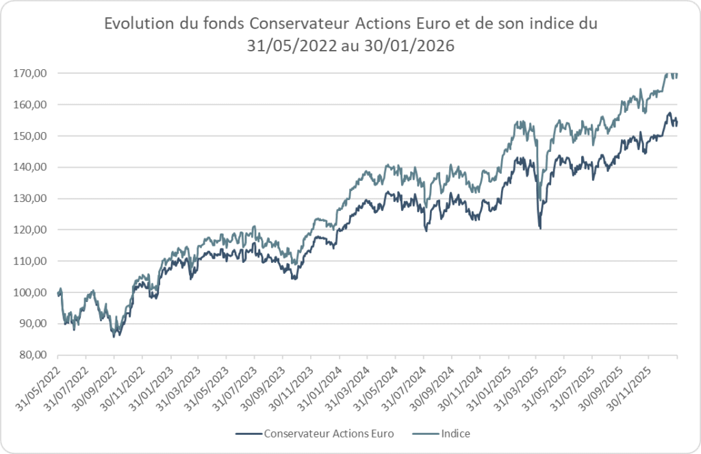 Performances en % du fonds Conservateur Actions Euro au 30 janvier 2026 :