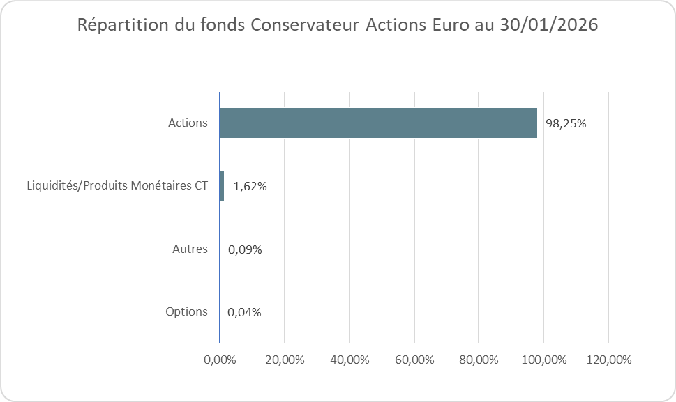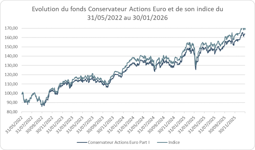 Performances en % du fonds Conservateur Actions Euro au 30 janvier 2026 :