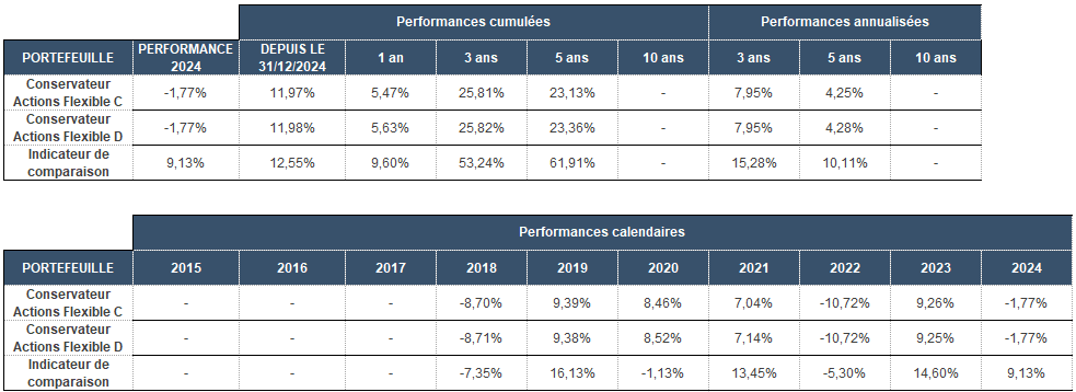 Performances en % du fonds Conservateur Actions Flexibles au 30 septembre 2025 :
