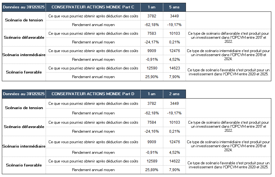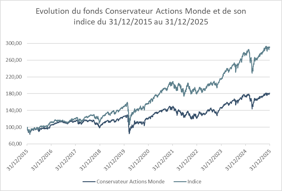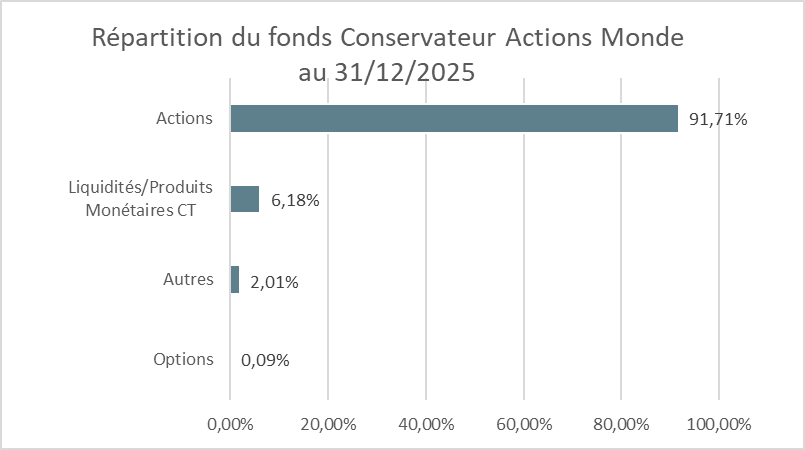 Performances en % du fonds Conservateur Actions Monde au 31 décembre 2025 :