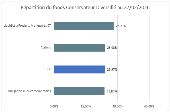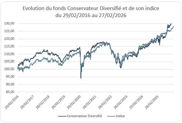 Performances en % du fonds Conservateur Diversifié au 27 février 2026 :