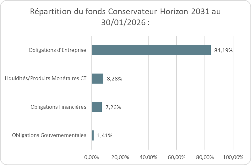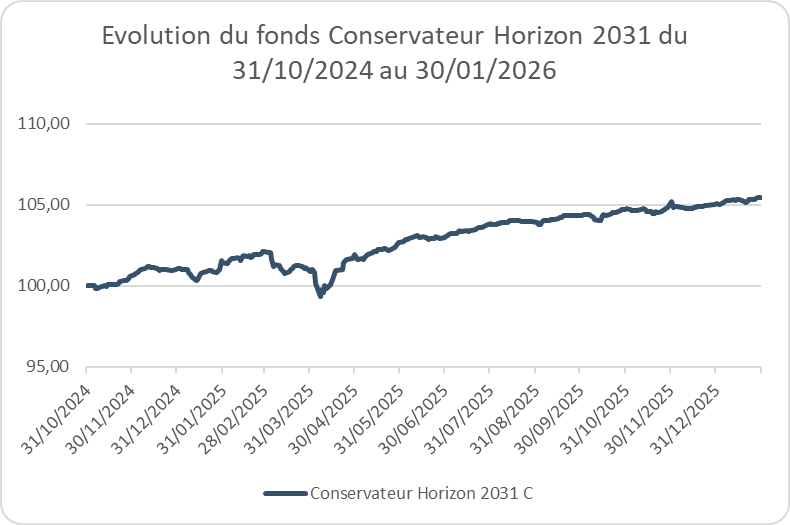 Performance en % du fonds Conservateur Horizon 2031 au 30 janvier 2026 :