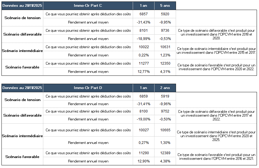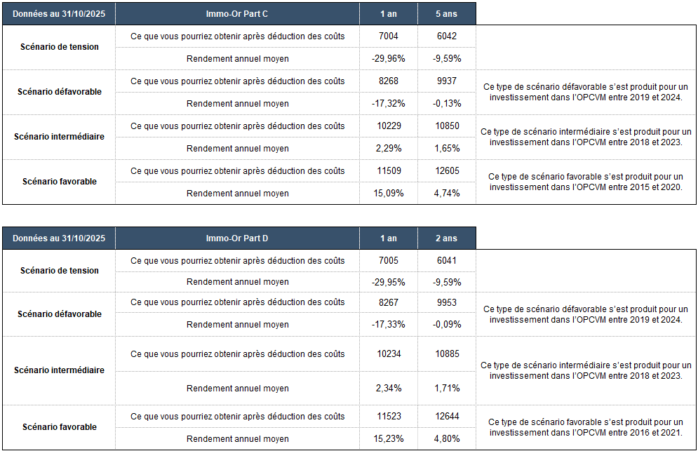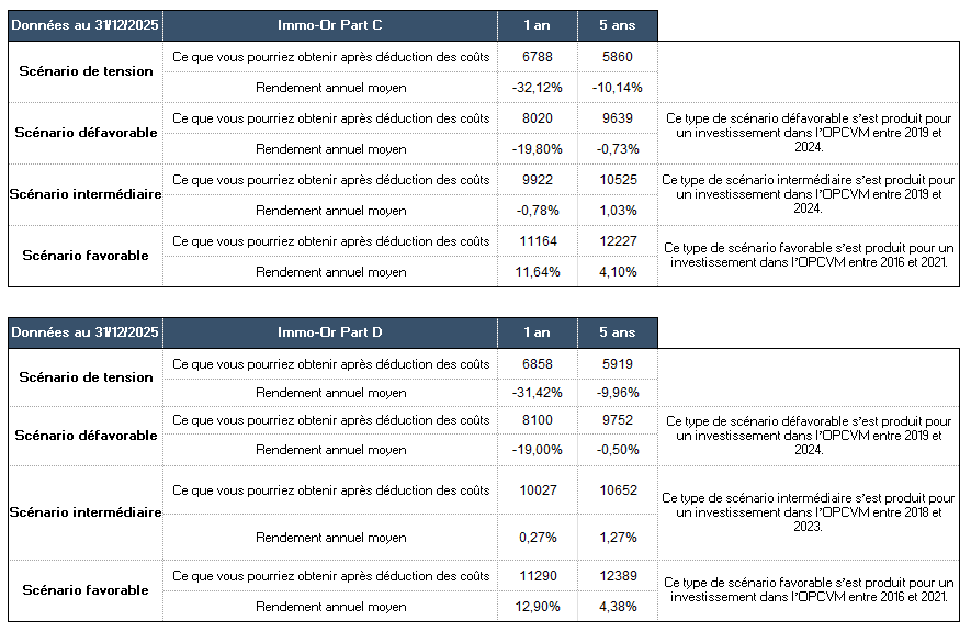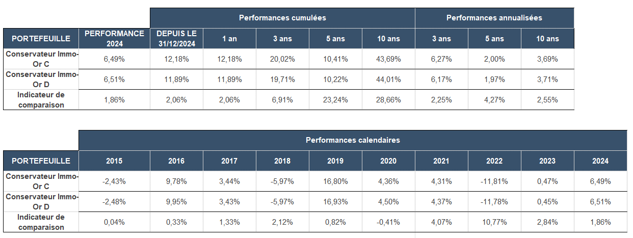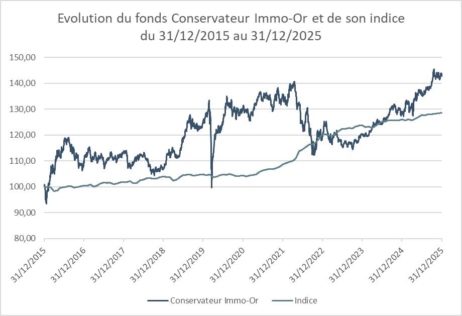 Performances en % du fonds Conservateur Immo-Or au 31 décembre 2025 :