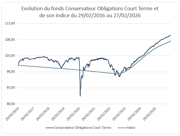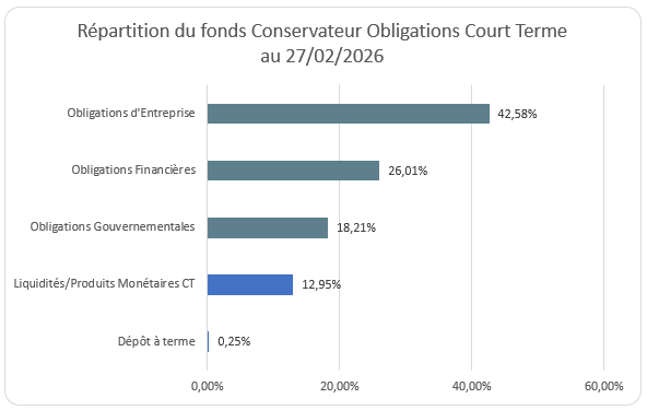Performances en % du fonds Conservateur Obligations Court Terme au 27 février 2026 :
