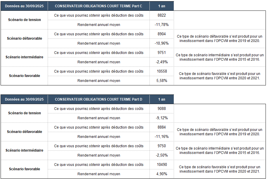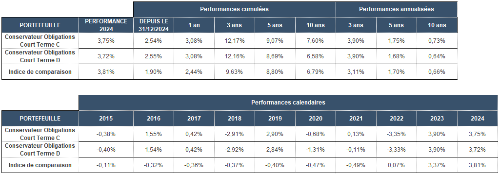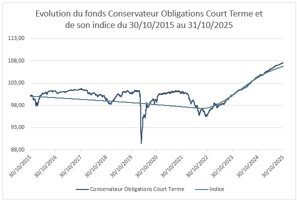 Performances en % du fonds Conservateur Obligations Court Terme au 31 octobre 2025 :