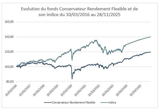 Performances en % du fonds Conservateur Rendement Flexible au 28 Novembre 2025 :